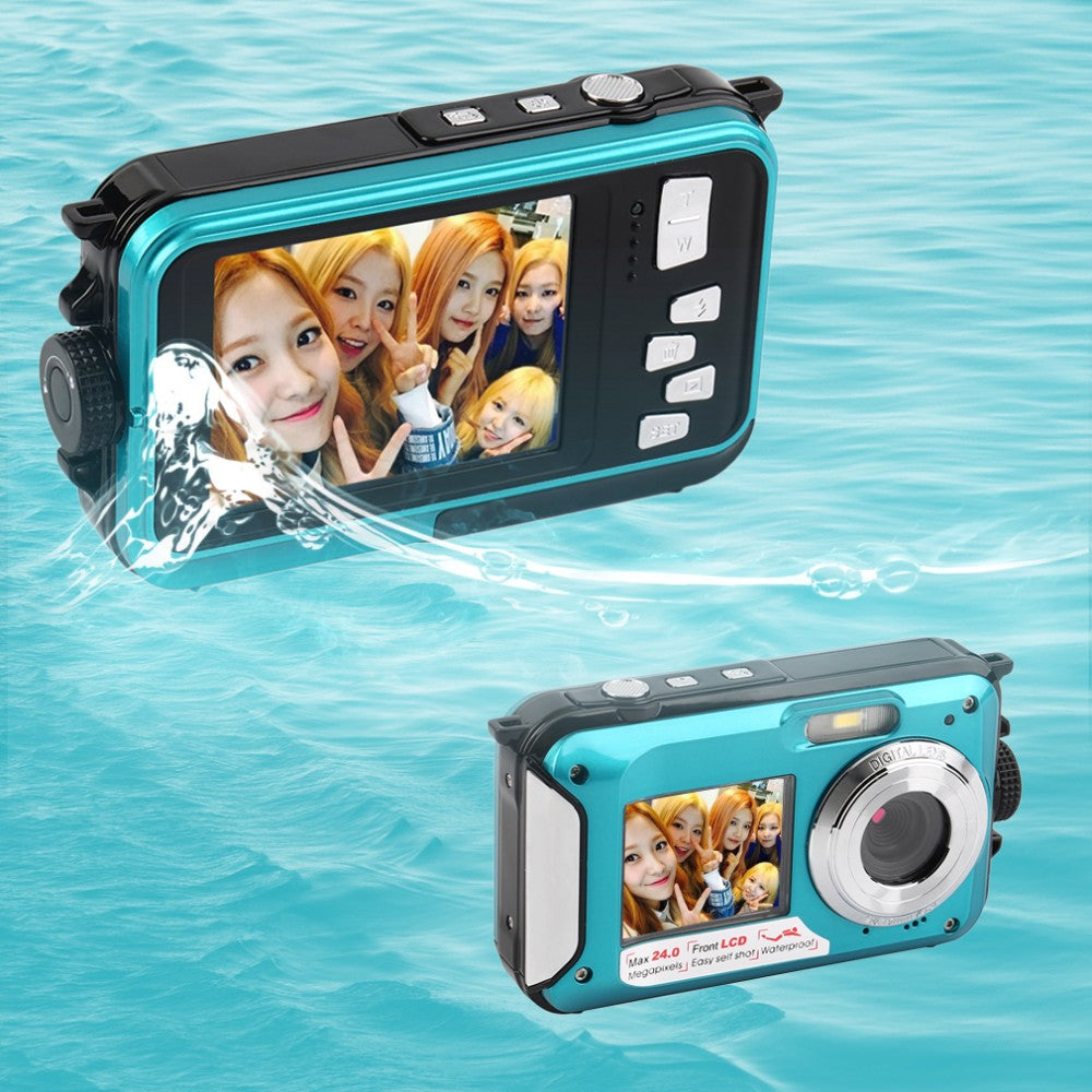 กล้องดิจิตอล 2.7 นิ้ว 1.8 นิ้วรองรับหน้าจอคู่ 3M กล้องกันน้ำ 24MP 16X ซูมดิจิตอลกล้องวิดีโอสีดำสีน้ำเงิน